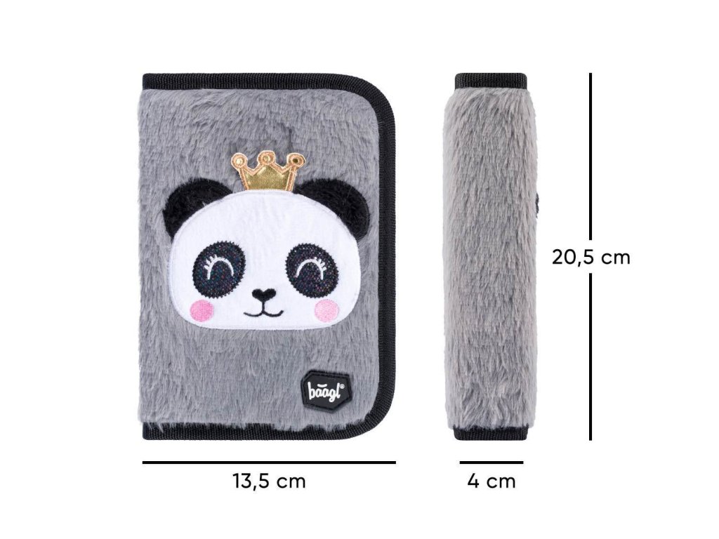 Sivý dvoklopový peračník s príjemným plyšovým povrchom a obrázkom roztomilej pandy.