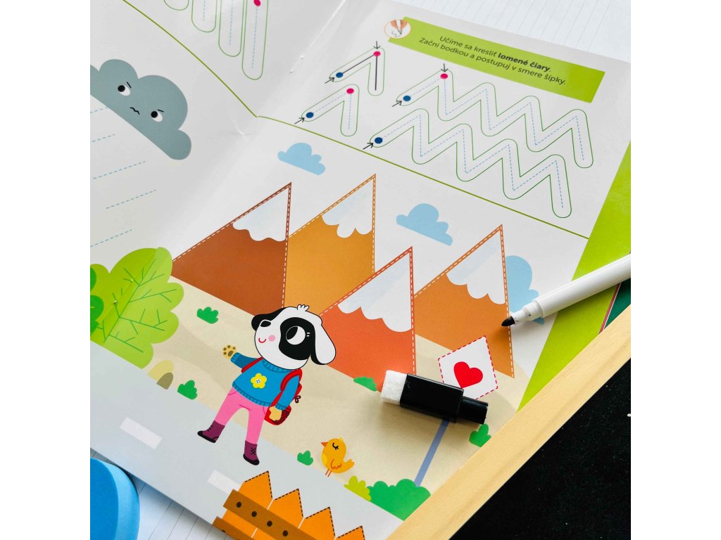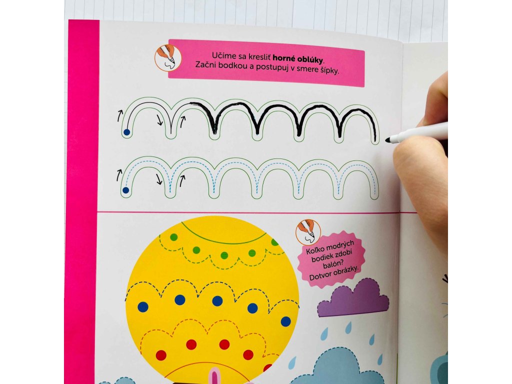 Deti sa postupne pripravia na prvé písanie a zároveň si rozvíjajú grafomotorické zručnosti. Súčasťou každého pracovného zošita je špeciálna fixka s hubkou na zmazávanie, vďaka ktorej je možné každú úlohu riešiť znova a znova.