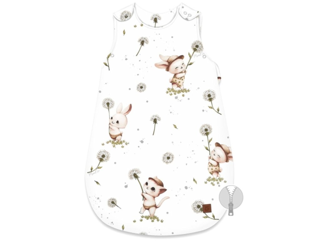 Spací vak, bavlna, 74 cm, Kocúrik a púpava - biela