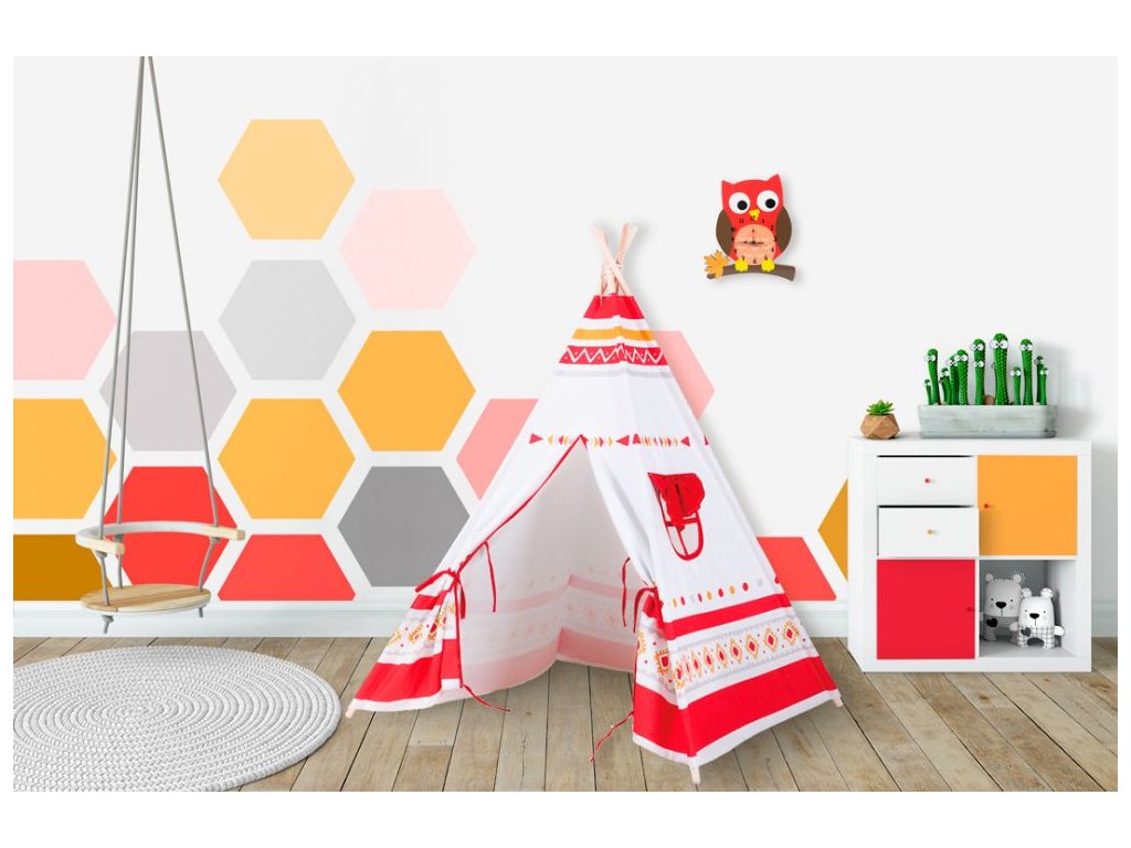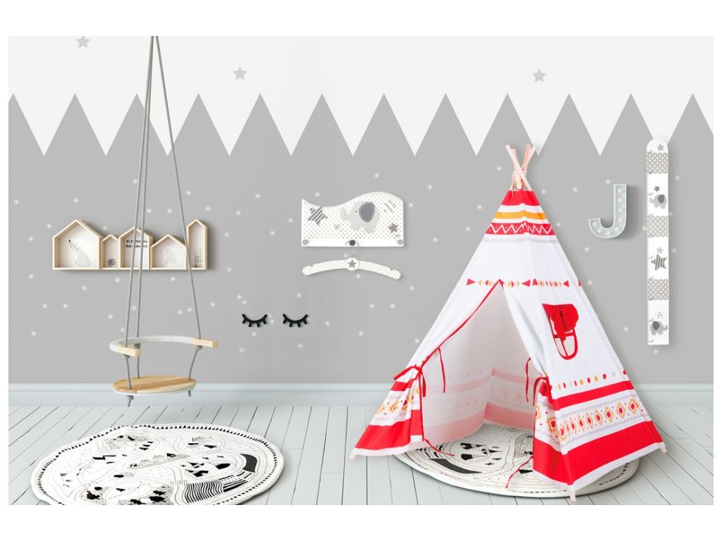 - praktická taška pre všetky prvky - tiež v indickom motívu, ktoré zodpovedajú celku. Vďaka taške je ľahké vziať so sebou svoj teepee, napríklad na dovolenku, na záhradu.