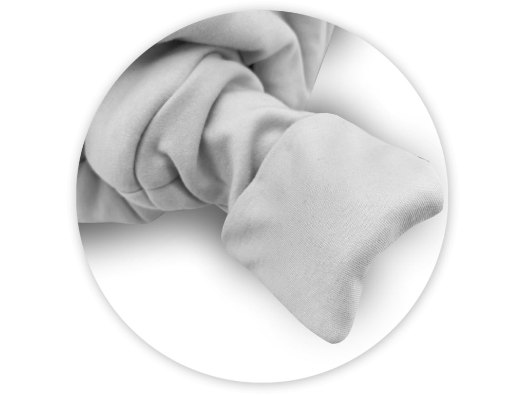- vonkajšie: prírodný 100% bavlnený úplet, ktorý nespôsobuje podráždenie ani alergie. Extrémne mäkké a príjemné na dotyk a zároveň odolné pri používaní.