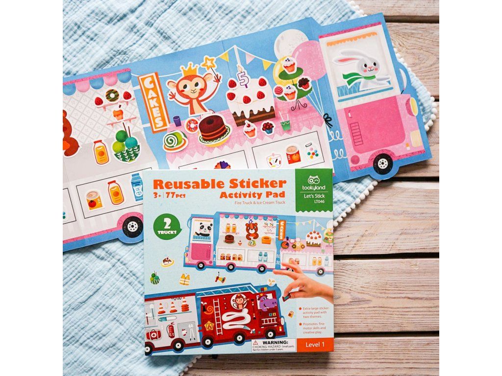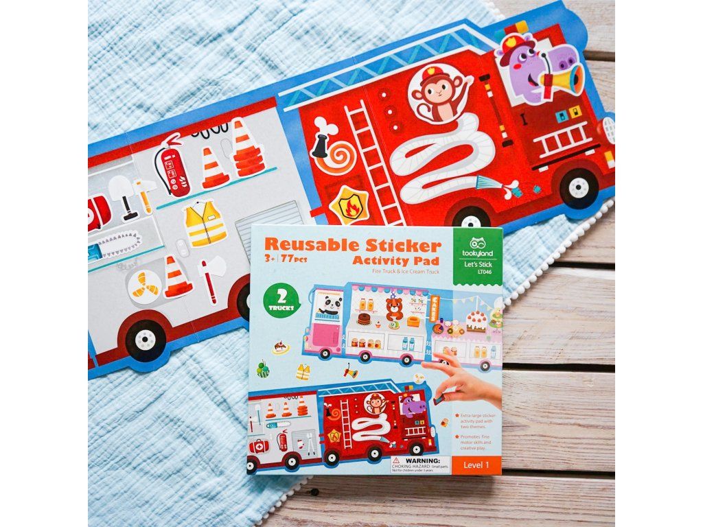 Tookyland Znovupoužiteľné nálepky Hasičské a Zmrzlinárske auto 2v1