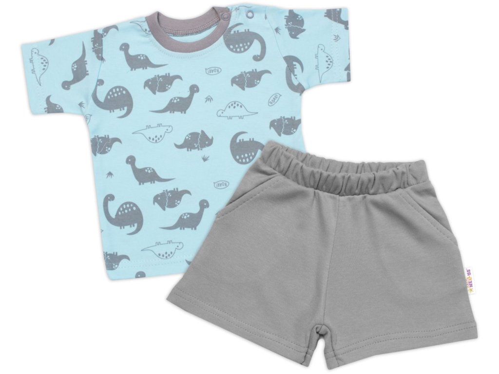 Tričko, krátký rukáv + kraťásky, 2D, Baby Nellys, Dino, bavlna, modrá/šedá
