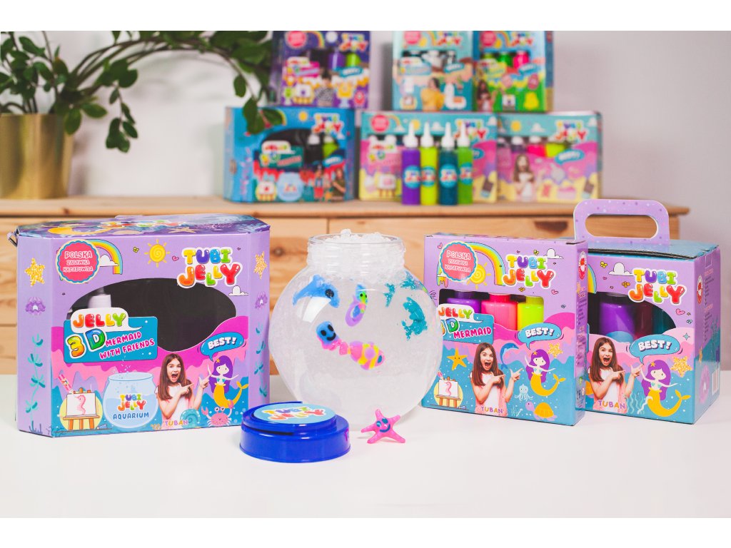 Tubi Jelly Kreatívny set s akváriom XL Morská panna Vytvorte si 3D gélové figúrky Tubi Jelly set je jedinečná tvorivá sada na tvorbu trojrozmerných figúrok. Set XL obsahuje až 6 farebných gélov. Súčasťou sú taktiež šablóny na kreslenie s motívmi morských panien. Po vyplnení šablóny gélmi ju ponoríte do rozpusteného aktivátora a vaša postavička sa premení na svoju trojrozmernú verziu. Vďaka priloženej prázdnej fólii si deti môžu nakresliť a vytvoriť čokoľvek im napadne. Vytvorené figúrky a tvary môžete umiestniť do priloženého akvária, ktoré naplníte vodnými kryštálmi a vytvoríte si tak svoj vlastný malý svet fantázie.Sada obsahuje:tekutý gél 150 ml v 6 farbách,tematické šablóny,6 x 5 g aktivátora,vodné kryštály,nádobu na prípravu figúrok,akvárium.Ocenená hračka roka 2021 V roku 2021 bol produkt Tubi Jelly ocenený titulom Hračka roka v kategórii kreatívne hračky. Vyskúšajte ho aj vy.Všetky produkty značky Tuban sú vyrobené z kvalitných materiálov, sú bezpečné a netoxické, čo znamená, že sa nemusíte obávať o zdravie svojich detí a môžete mať istotu, že ich čakajú len tie najlepšie zážitky.