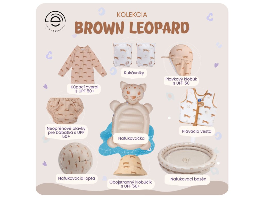 Obojstranný klobúčik s UPF 50+ Brown Leopard Deti ochráni pred slnečnými lúčmi! Doprajte deťom maximálnu ochranu a štýl s obojstranným letným klobúčikom od Swim Essentials! Tento praktický klobúčik ponúka dva rôzne vzhľady v jednom – jedna strana zaujme trendy leopardím vzorom, zatiaľ čo druhá je jednofarebná a univerzálna, takže ho ľahko zladíte s akýmkoľvek outfitom. Kvalitný letný klobúčik sa hodí na pieskovisko aj dovolenku Prémiová holandská značka Swim Essentials sa zameriava na vysokú kvalitu, funkčnosť a neopozeraný dizajn svojich výrobkov. Klobúčik má vysokú ochranu UPF 50+, široký okraj tieni tvár aj krk, čím pomáha predchádzať spáleniu. Je ľahký, pohodlný a ideálny na každodenné nosenie – na pieskovisku, pri bazéne aj na letnej dovolenke. Vyberte si zo štyroch veľkostí a zaistite deťom pohodlie a bezpečie pod horúcim slnkom!