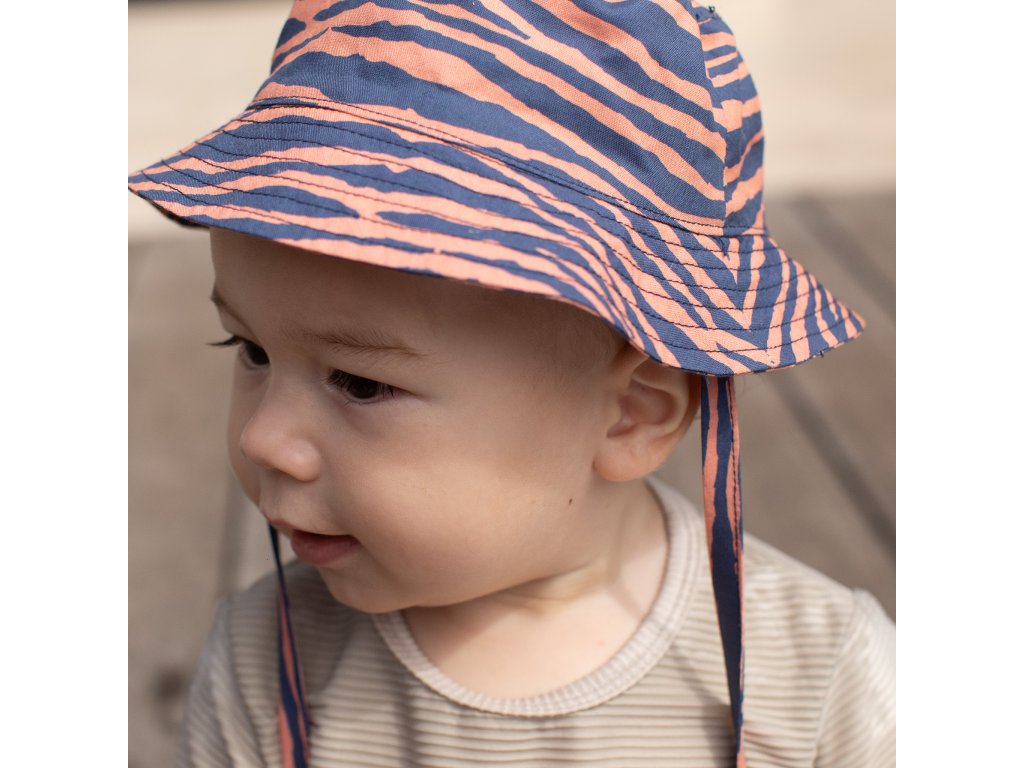 Praktický letný klobúčik od Swim Essentials s oranžovo modrým vzorom zebry ochráni deti pred UV žiarením. Má široký okraj, ktorý tieni na tvár aj krk, teda časti pokožky, ktoré sú často exponované a ľahko sa spália.