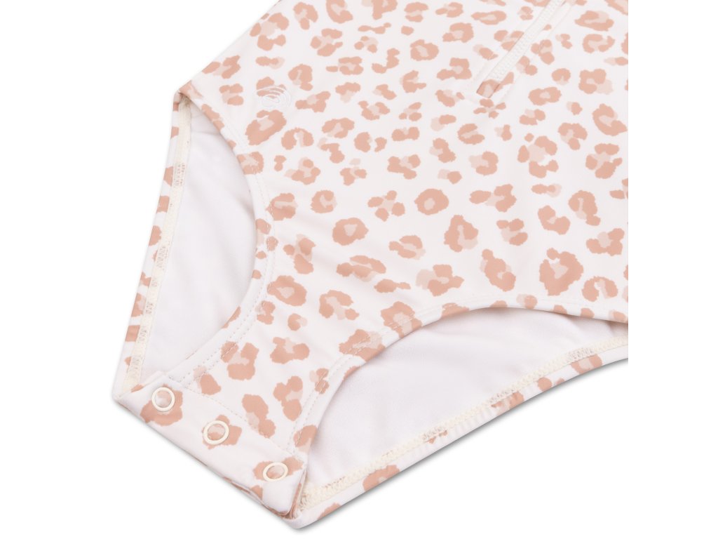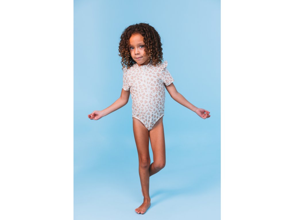 Detské plavky s krátkym rukávom od Swim Essentials s ochranou proti slnku UPF 50+ a s nadčasovým leopardím vzorom v béžovej farbe sú snom každého rodiča. Plavky sú totiž vyrobené z pevnej strečovej látky, ktorá dokonale ochráni kožu vášho dieťaťa pred slnečným žiarením. Plavky sa vyrábajú v niekoľkých veľkostiach. ODPORÚČAME KÚPIŤ O ČÍSLO VÄČŠIU VEĽKOSŤ, NEŽ STE ZVYKNUTÍ.Dievčenské plavky sú vhodné do bazéna aj mora