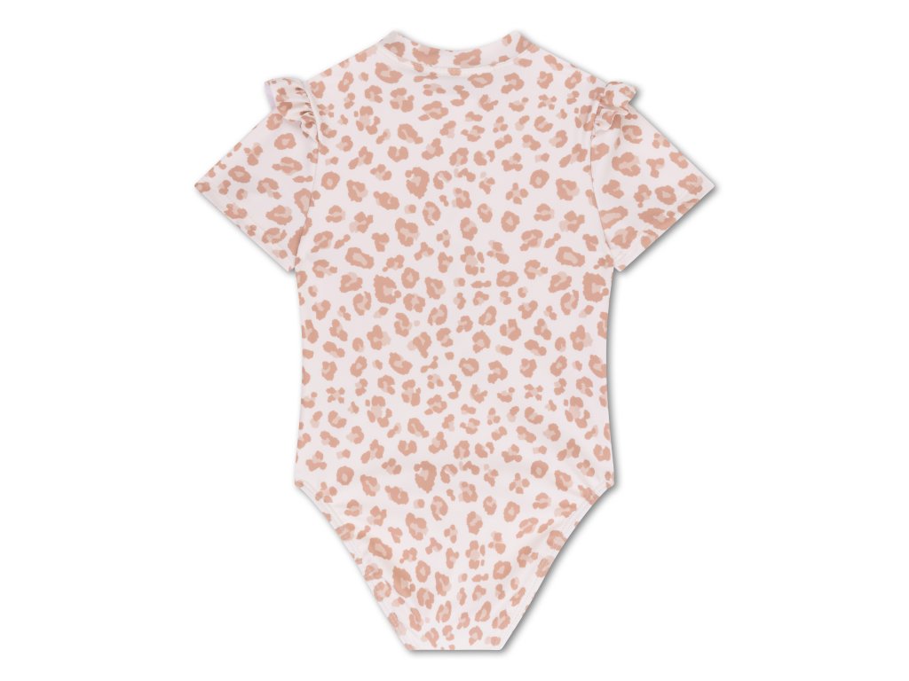Plavky s krátkym rukávom s UPF 50+ Beige Leopard Zábava vo vode aj ochrana proti slniečku!