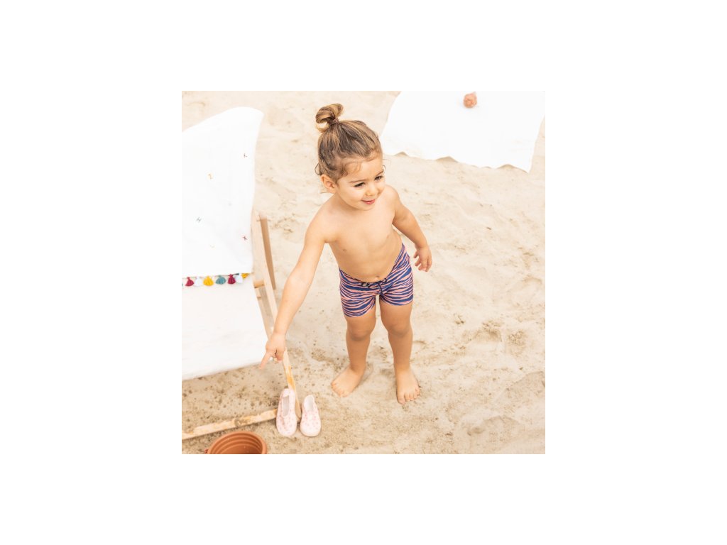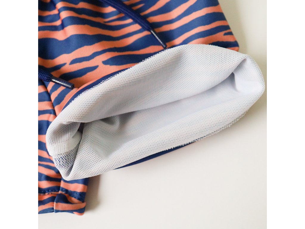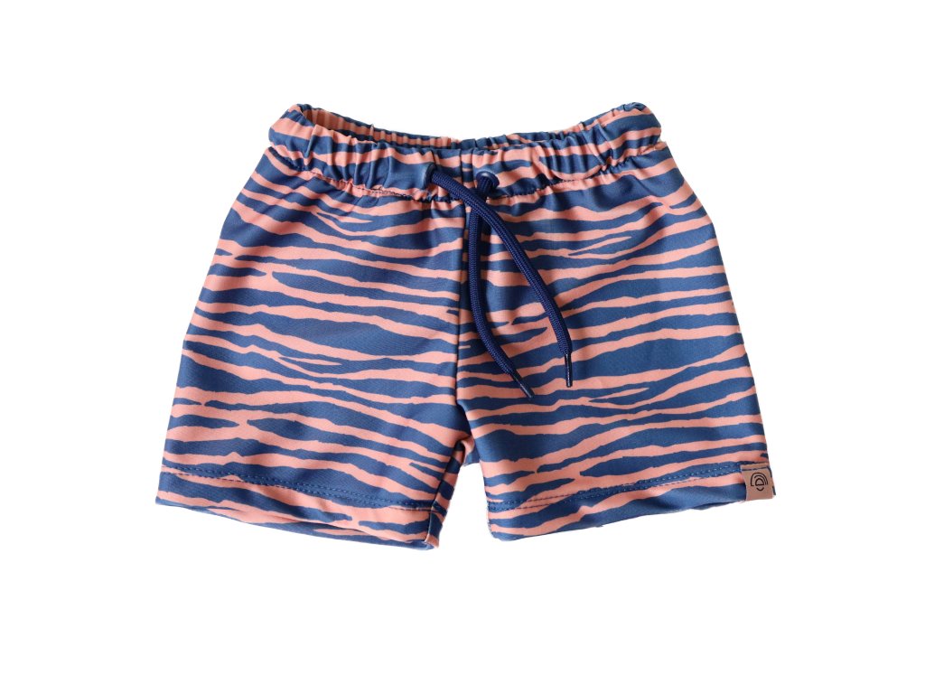 Detské plavkové boxerky od Swim Essentials s ochranou proti slnku UPF 50+ a s nadčasovým oranžovo modrým vzorom zebry si vaše deti hneď zamilujú. Plavky sú totiž vyrobené z odolného strečového materiálu, ktorý dokonale ochráni kožu pred slnečným žiarením.