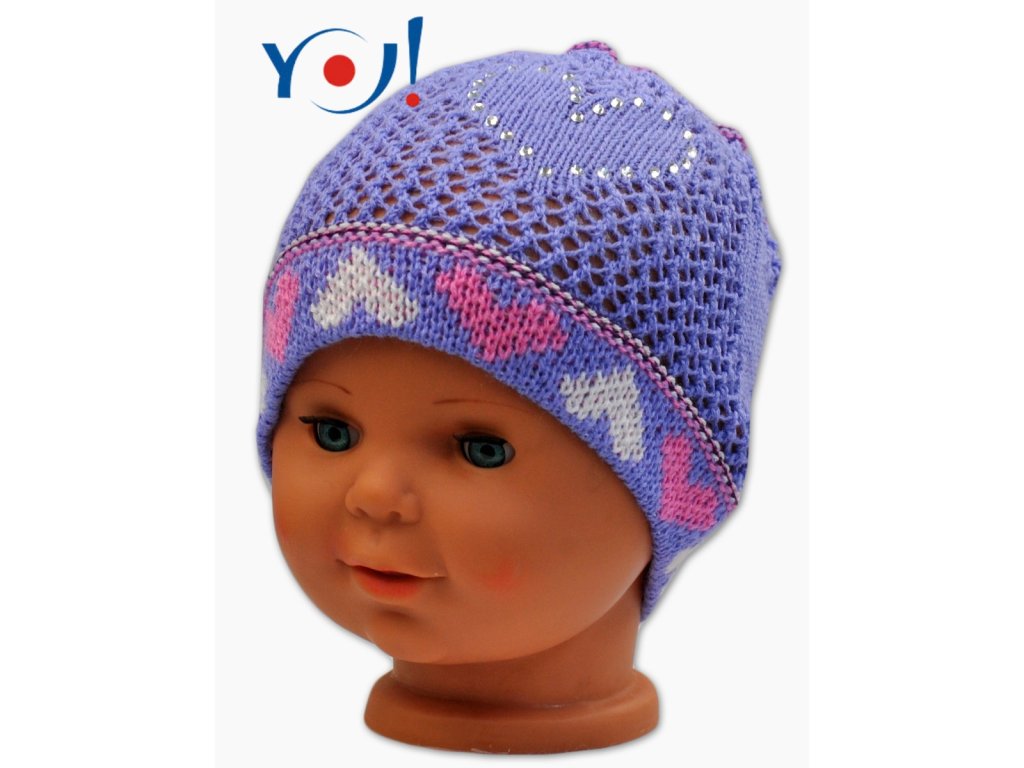 YO ! Háčkovaná čiapočka YO! Srdiečka - fialová