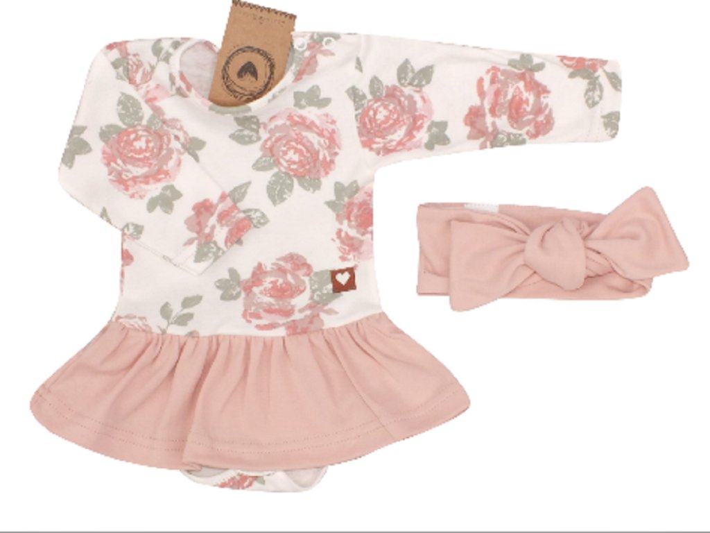 Z&Z 2-dílná sada sukničkobody s květy + čelenka - starorůžová