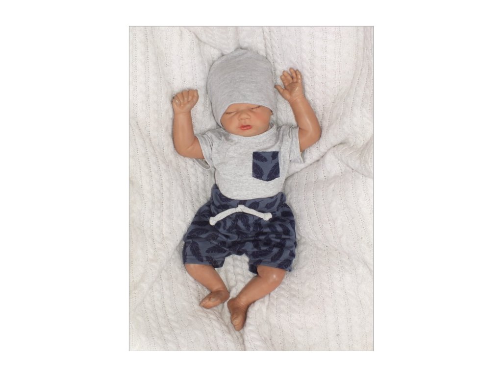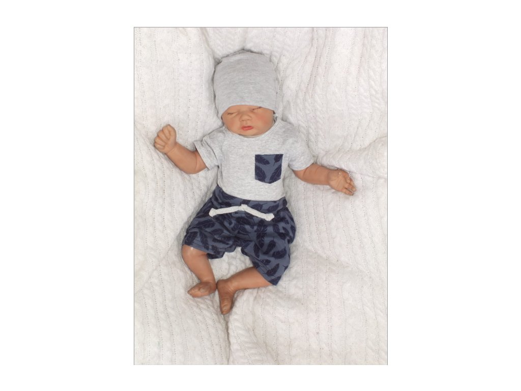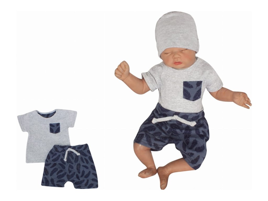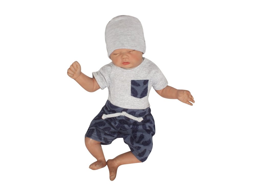 Z&Z 2-dílná sada tričko kr. rukáv, kraťásky s provázkem Pírka - granát, šedá