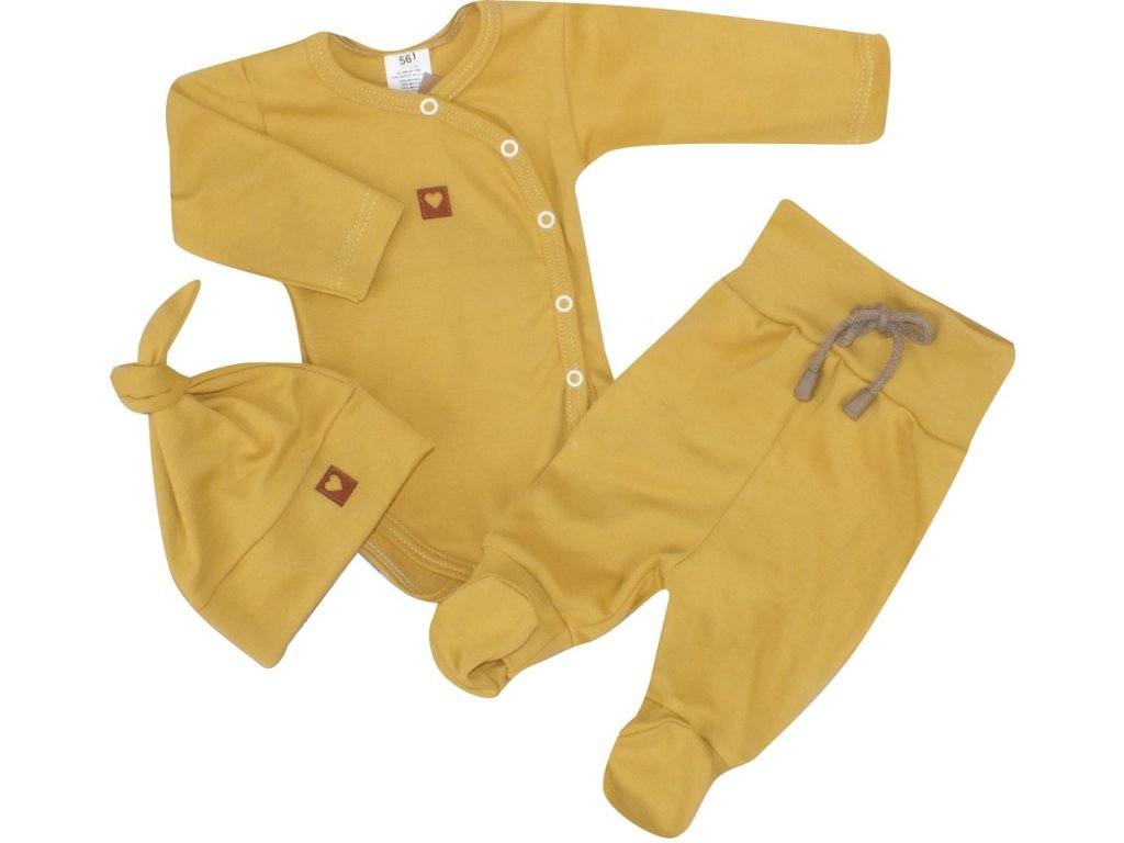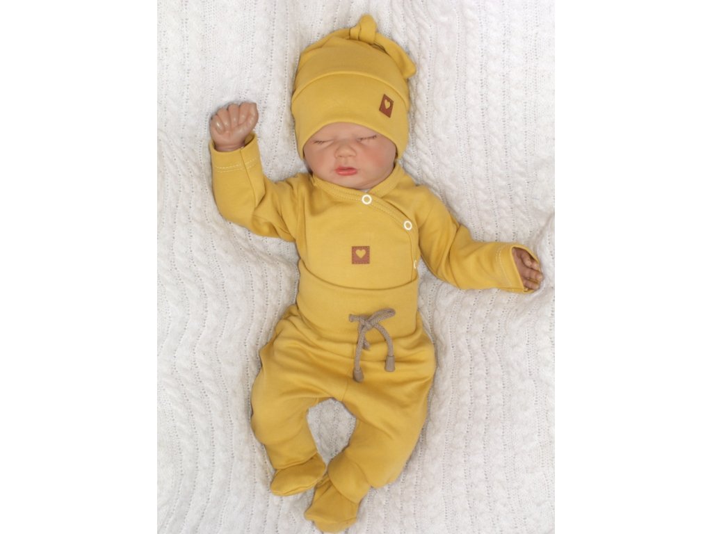 Z&Z 3-dílná soupravička body, polodupačky s provázkem a čepička - hořčicová