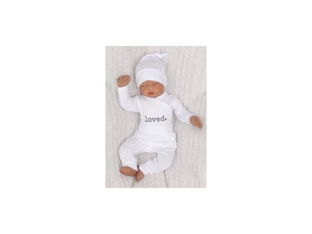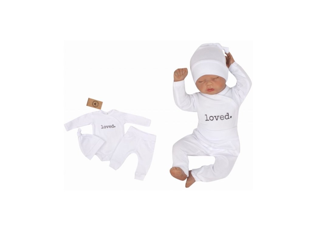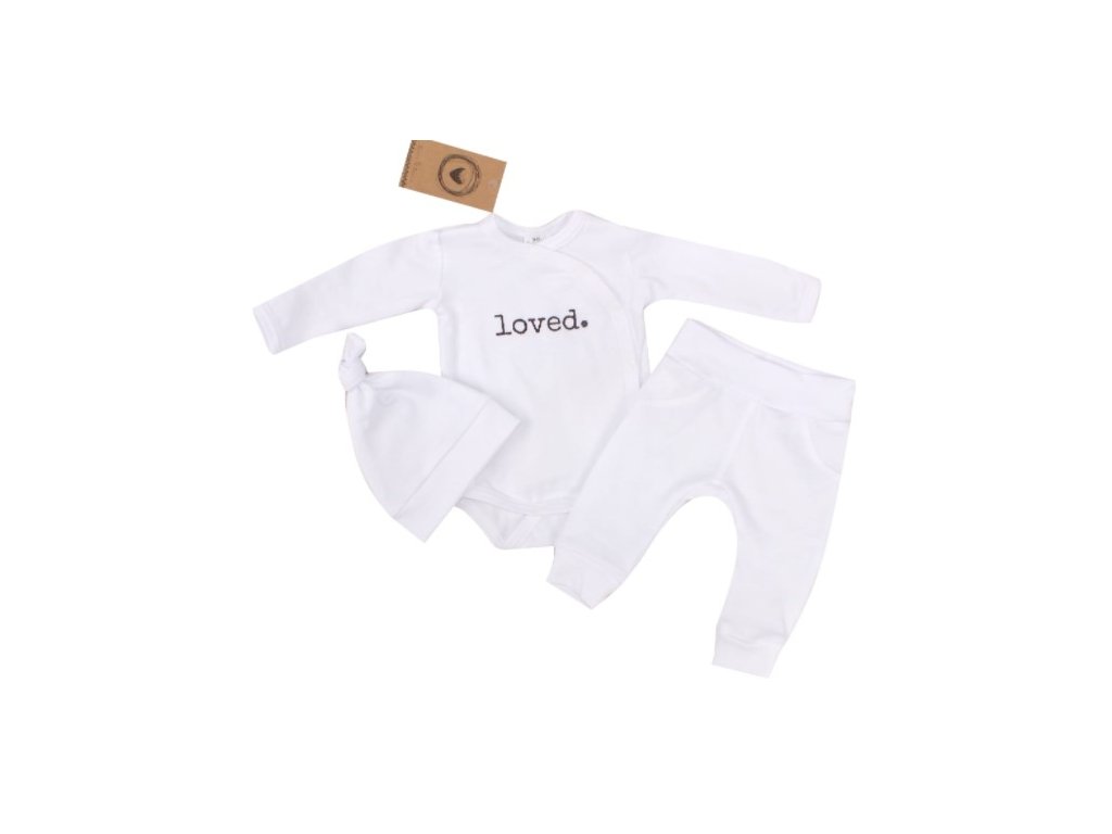 Z&Z 3-dílná soupravička body, tepláčky a čepička Loved - bílá