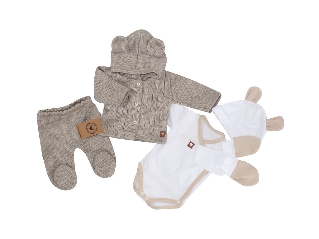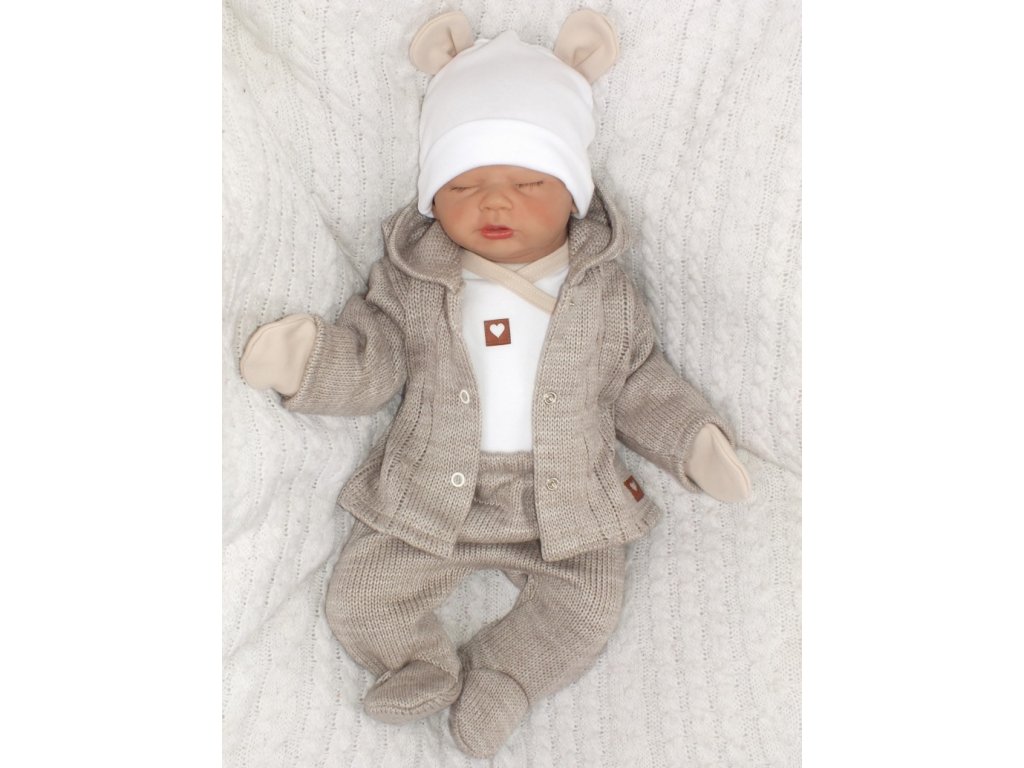 Z&Z 5-dílná kojenecká soupravička pletená do porodnice - béžová, bílá