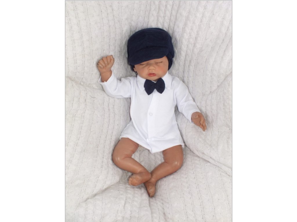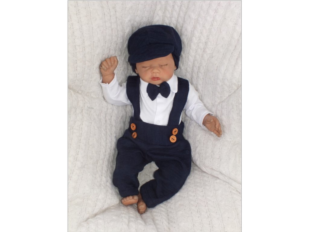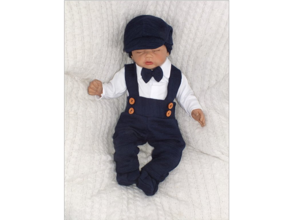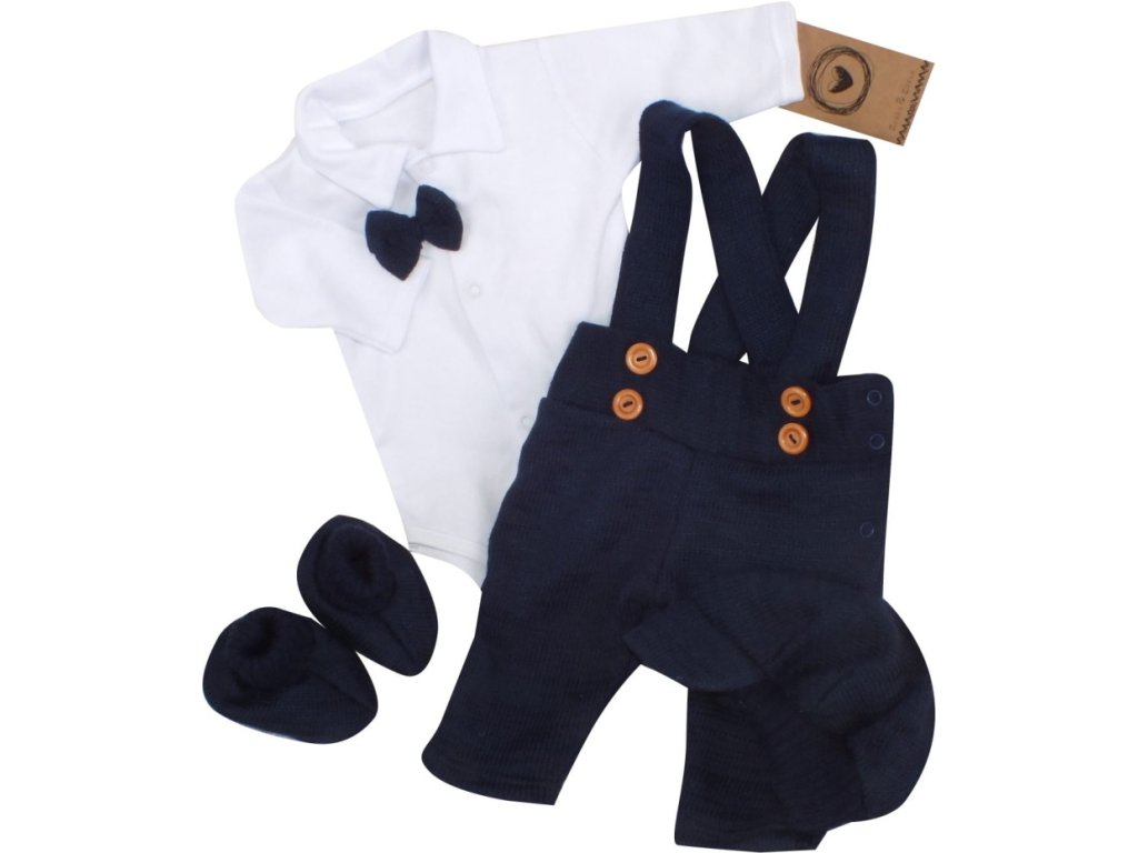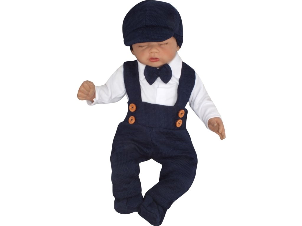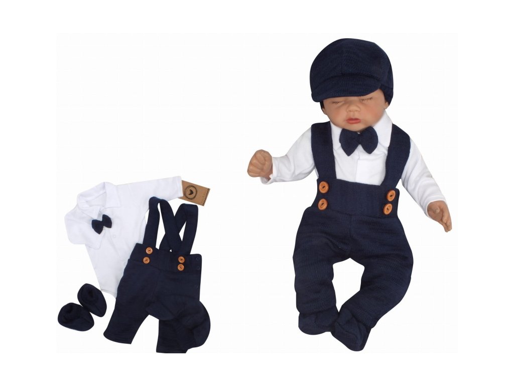 Z&Z 5-dílná pletená sada Boy, body, kalhoty, čepička, motýlek, botičky, granát