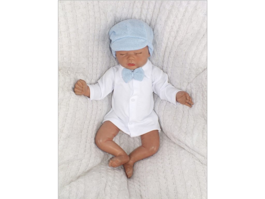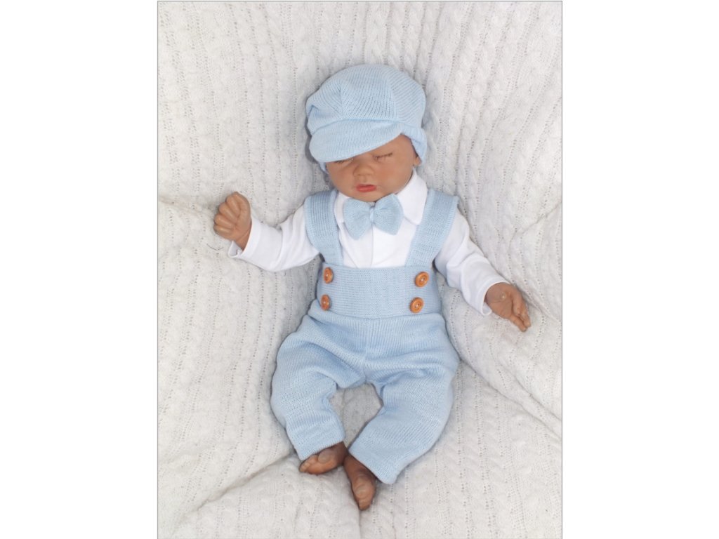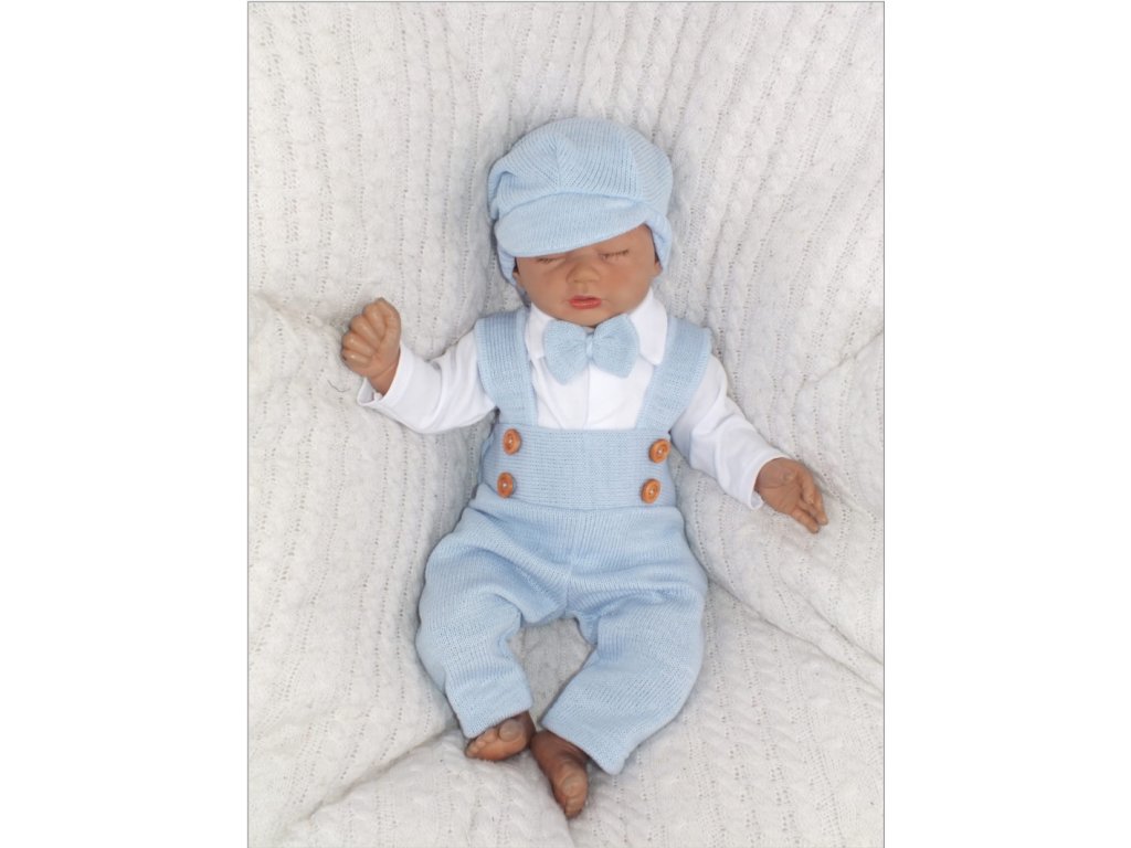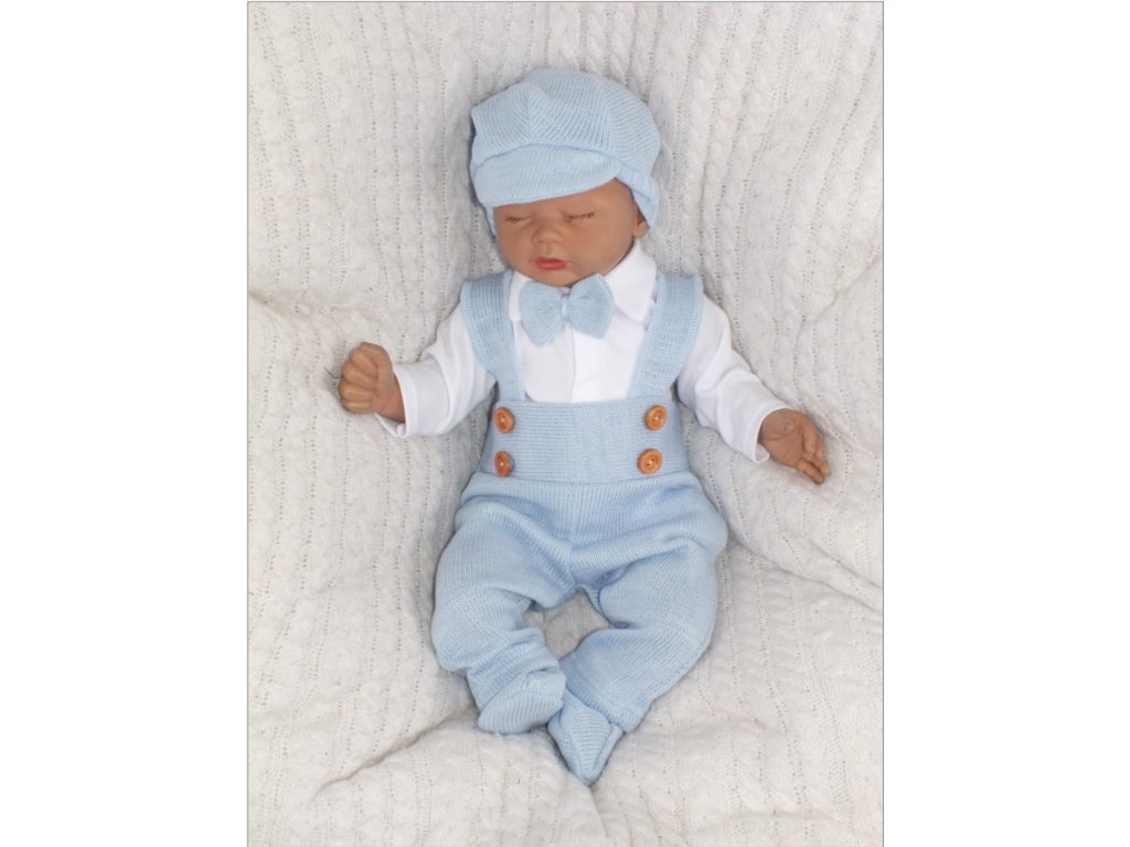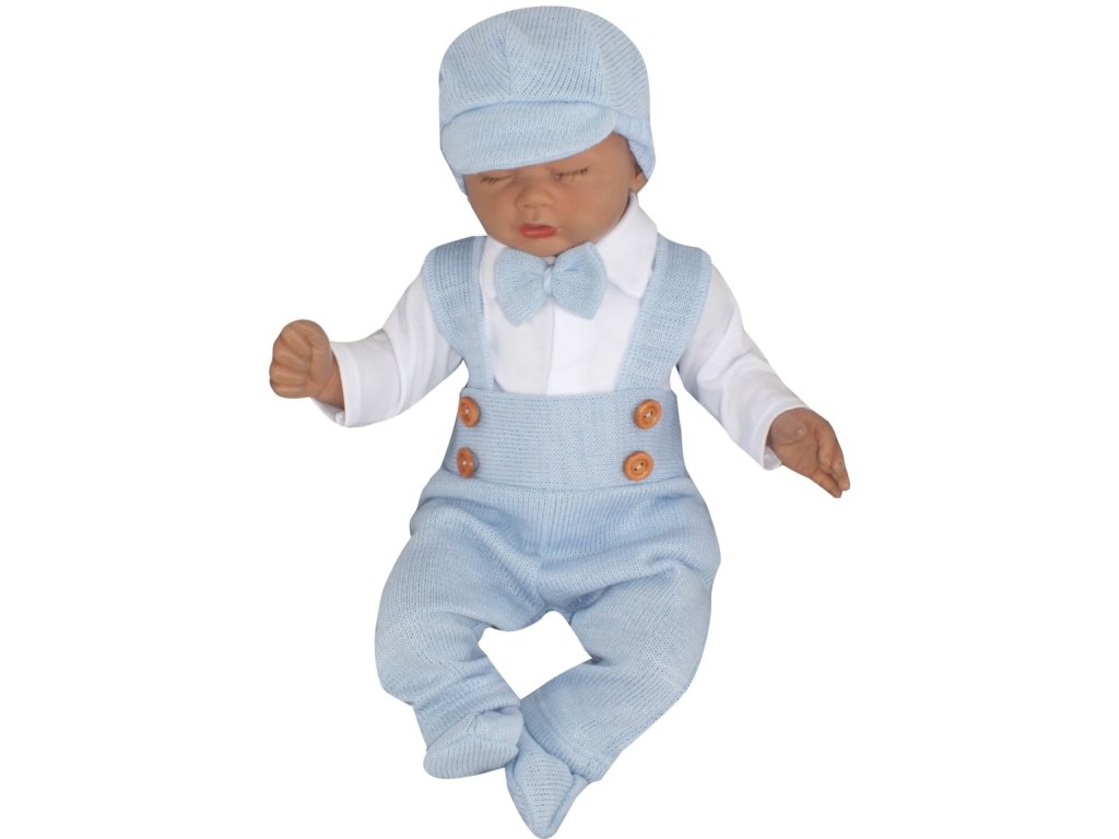 Z&Z 5-dílná pletená sada Boy, body, kalhoty, čepička, motýlek, botičky, modrá