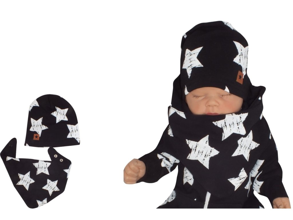 Z&Z Bavlněná čepička + šátek, Hvězdy, černá