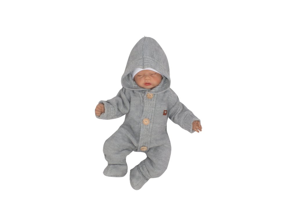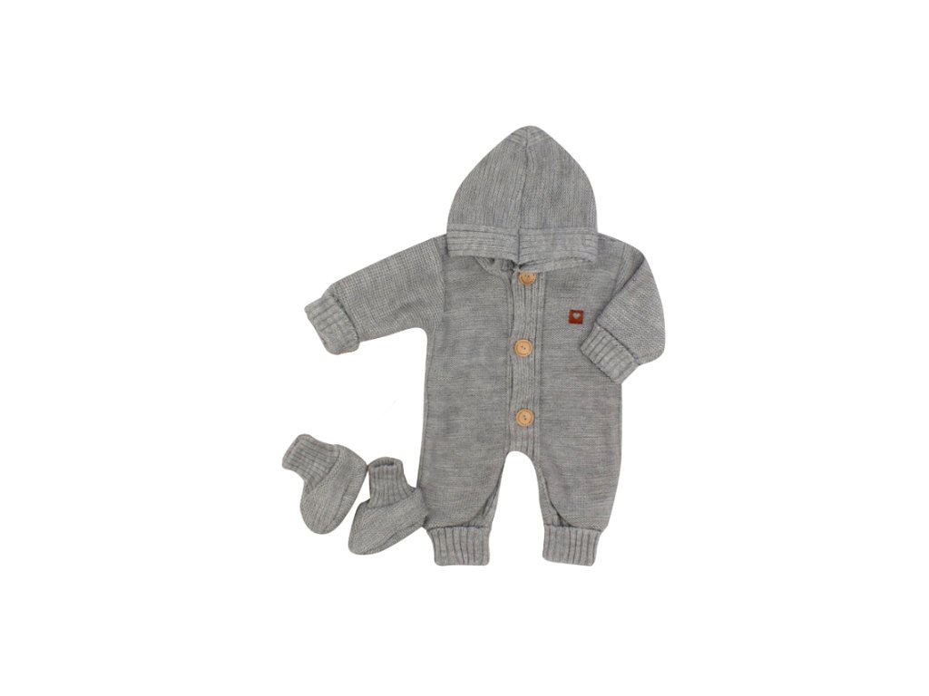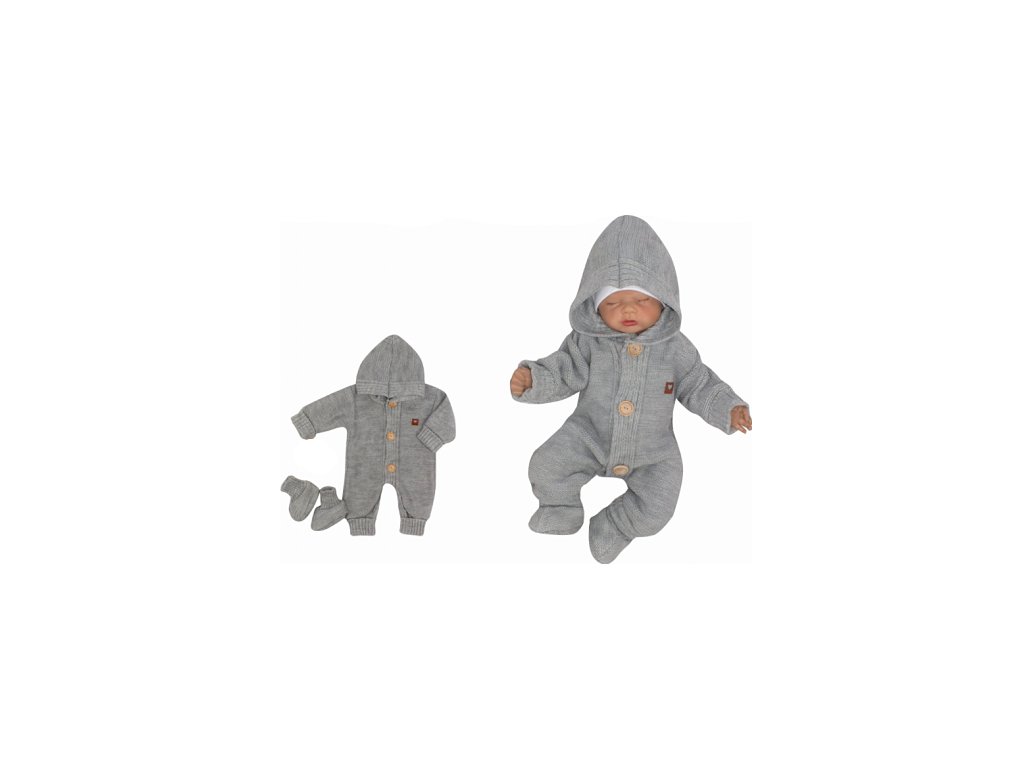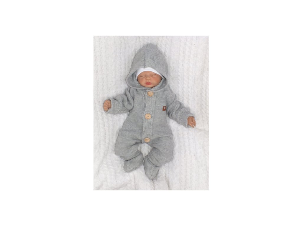 Z&Z Dětský pletený overálek s kapucí + botičky, šedý