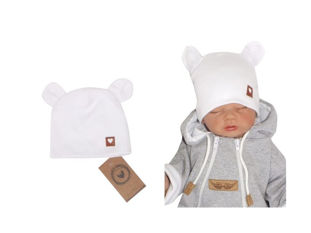 Z&Z Dvouvrstvá bavlněná čepička LOVE TEDDY, bílá