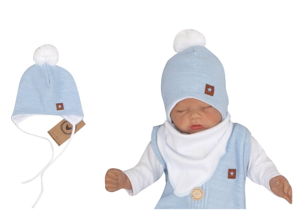 Z&Z Dvouvrstvá pletená čepice na zavazování s bambulí, modrá