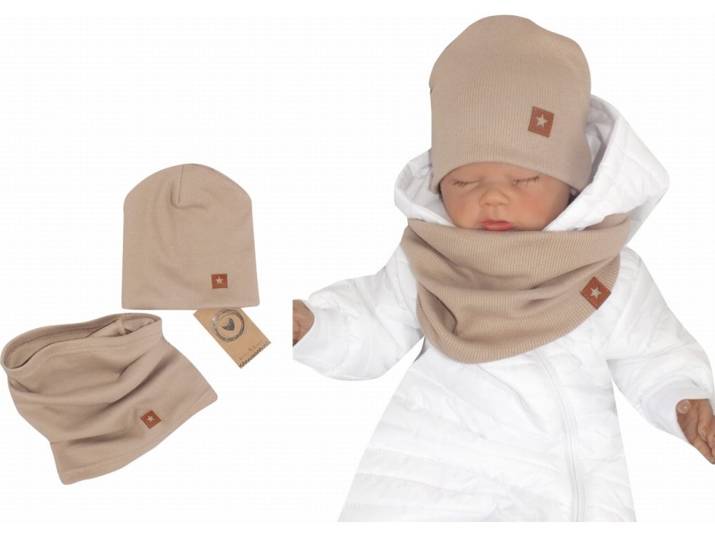 Z&Z Dvouvrstvá žebrovaná čepička + nákrčník, béžová