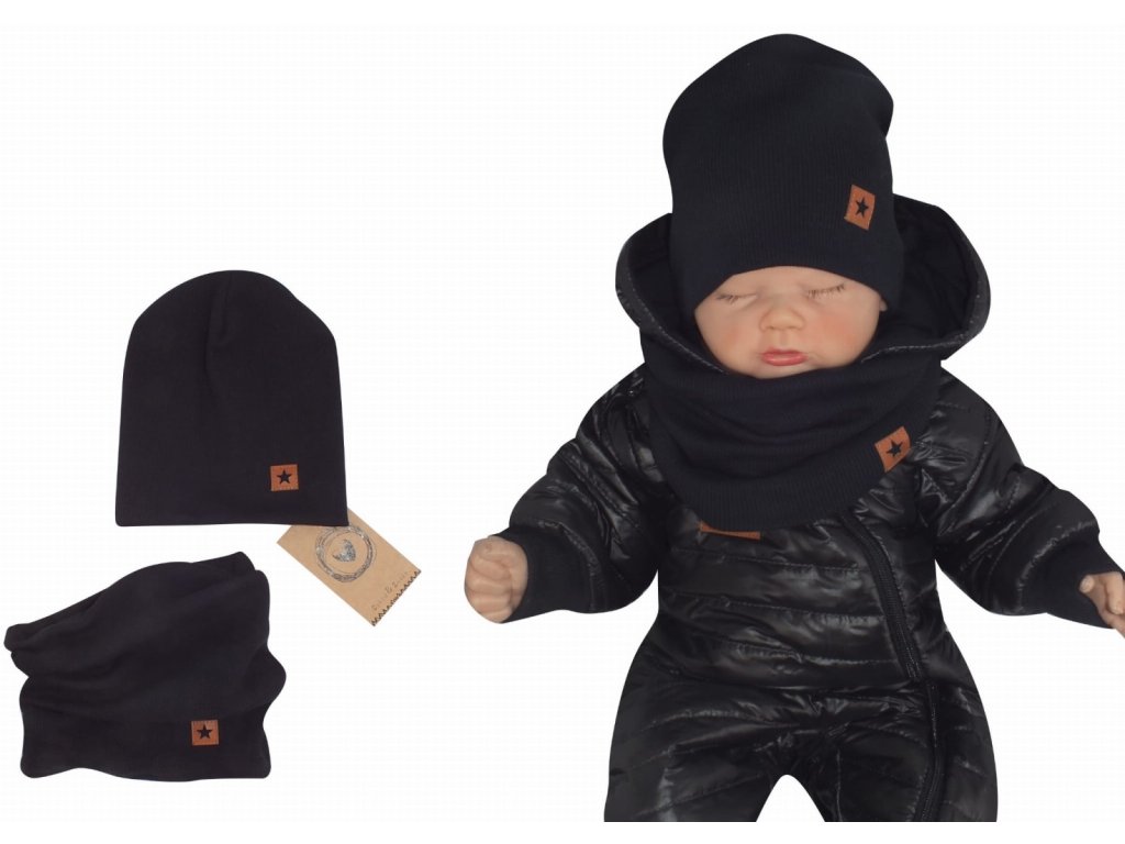 Z&Z Dvouvrstvá žebrovaná čepička + nákrčník, černá