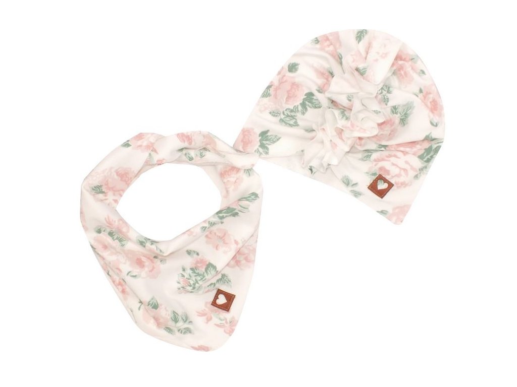 Z&Z Stylová dětská jarní/podzimní bavlněná čepice, turban s šátkem, kytky