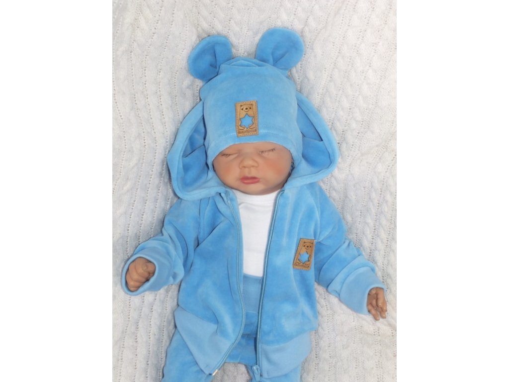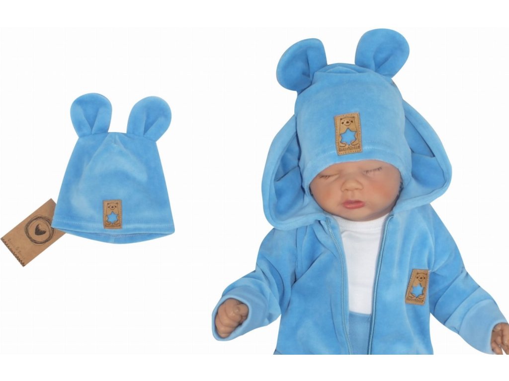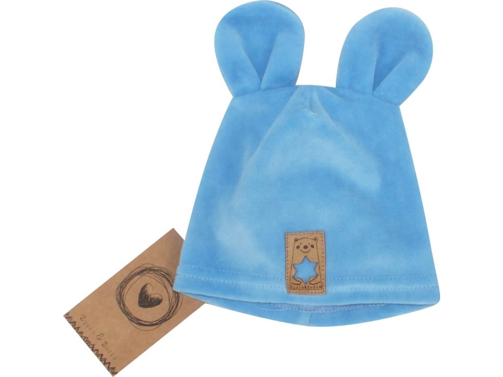 Z&Z Velurová, semišková čepička s oušky, sv. modrá