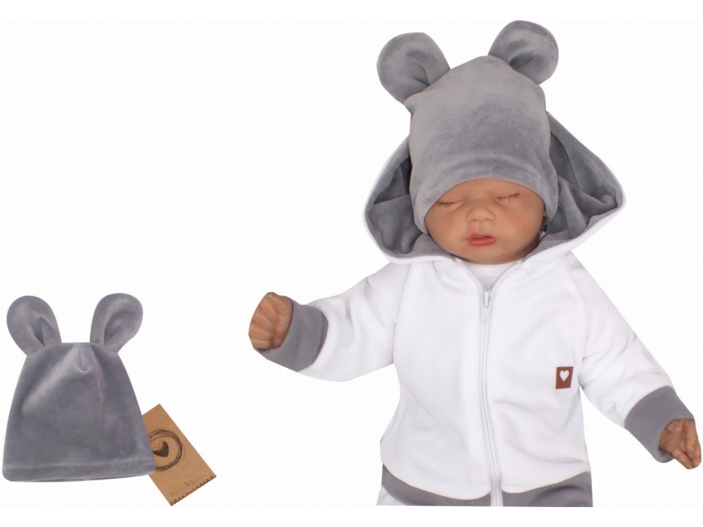 Z&Z Velurová, semišková čepička s oušky Teddy, šedá
