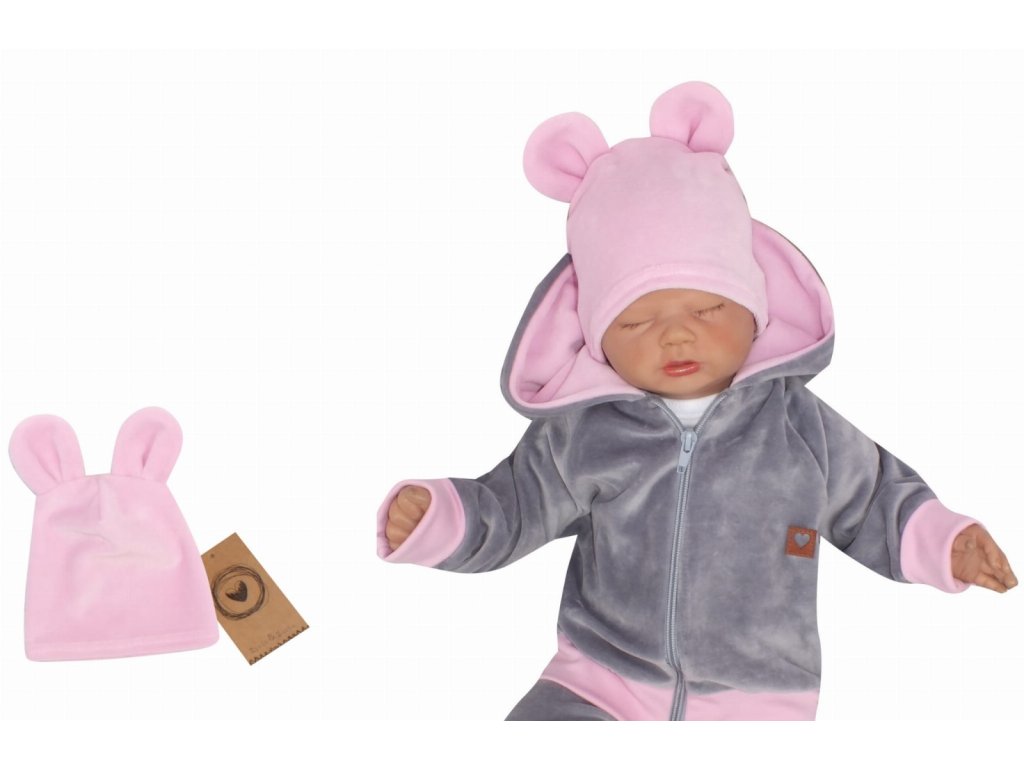 Z&Z Velurová, semišková čepička s oušky Teddy, sv . růžová