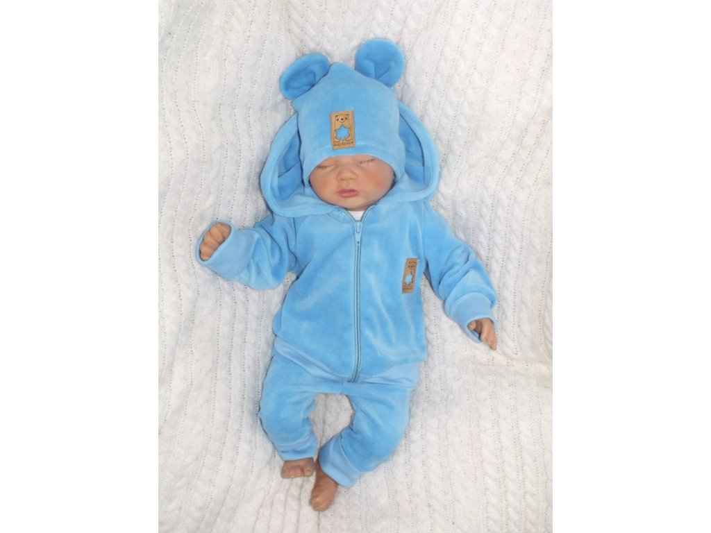 Z&Z Velurová, semišková tepláková souprava s oušky MYŠKA - sv. modrá