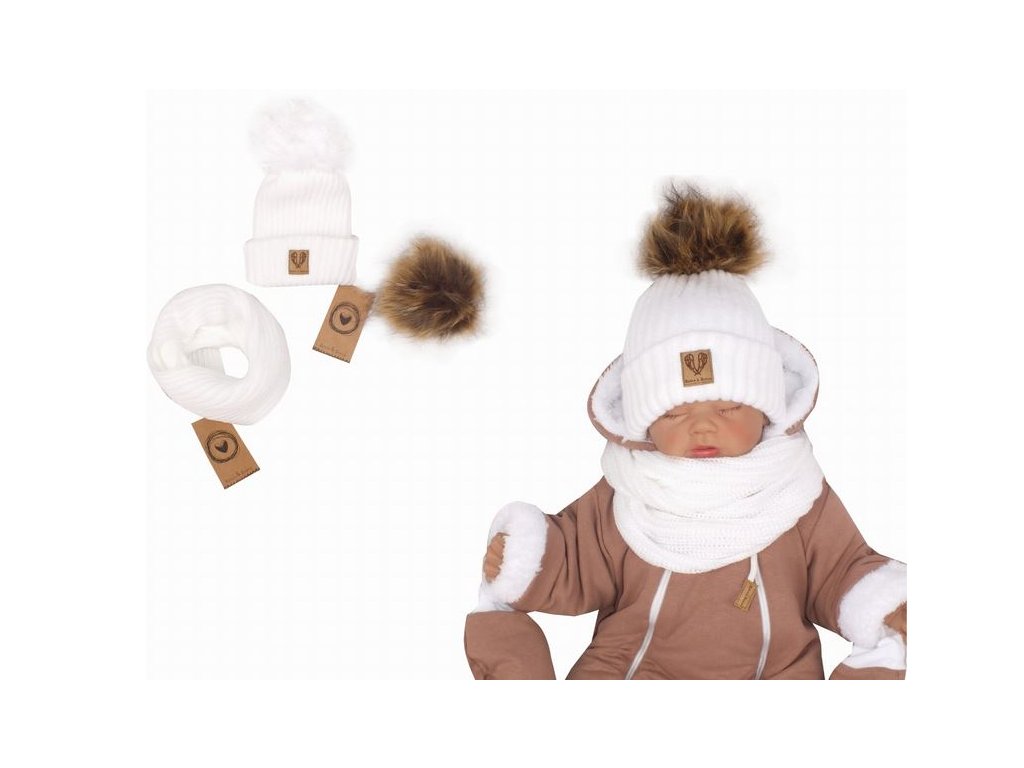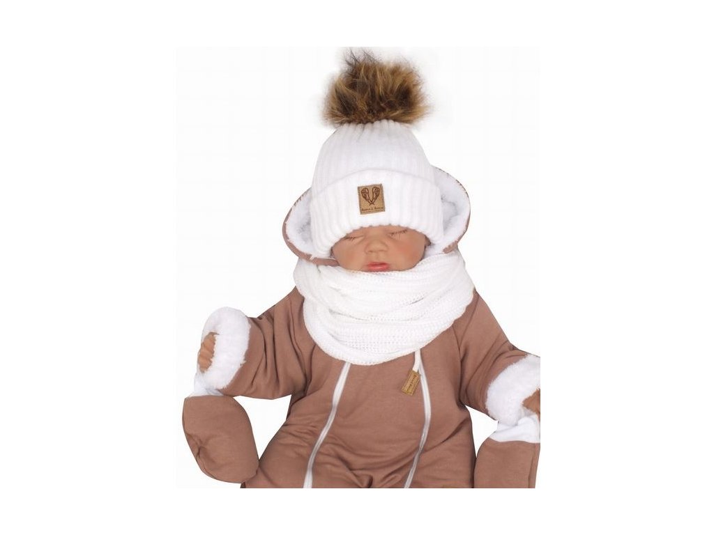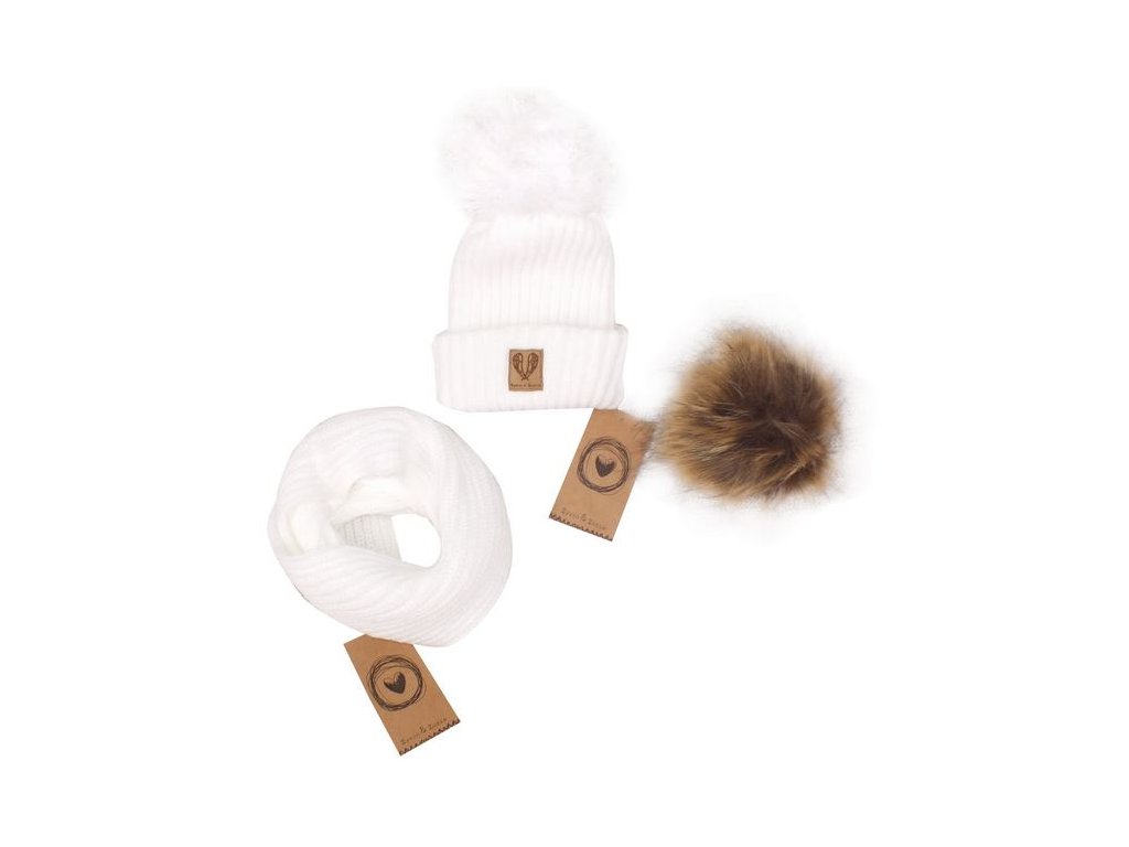Z&Z Zimní čepice 3v1 + komínek, bílá