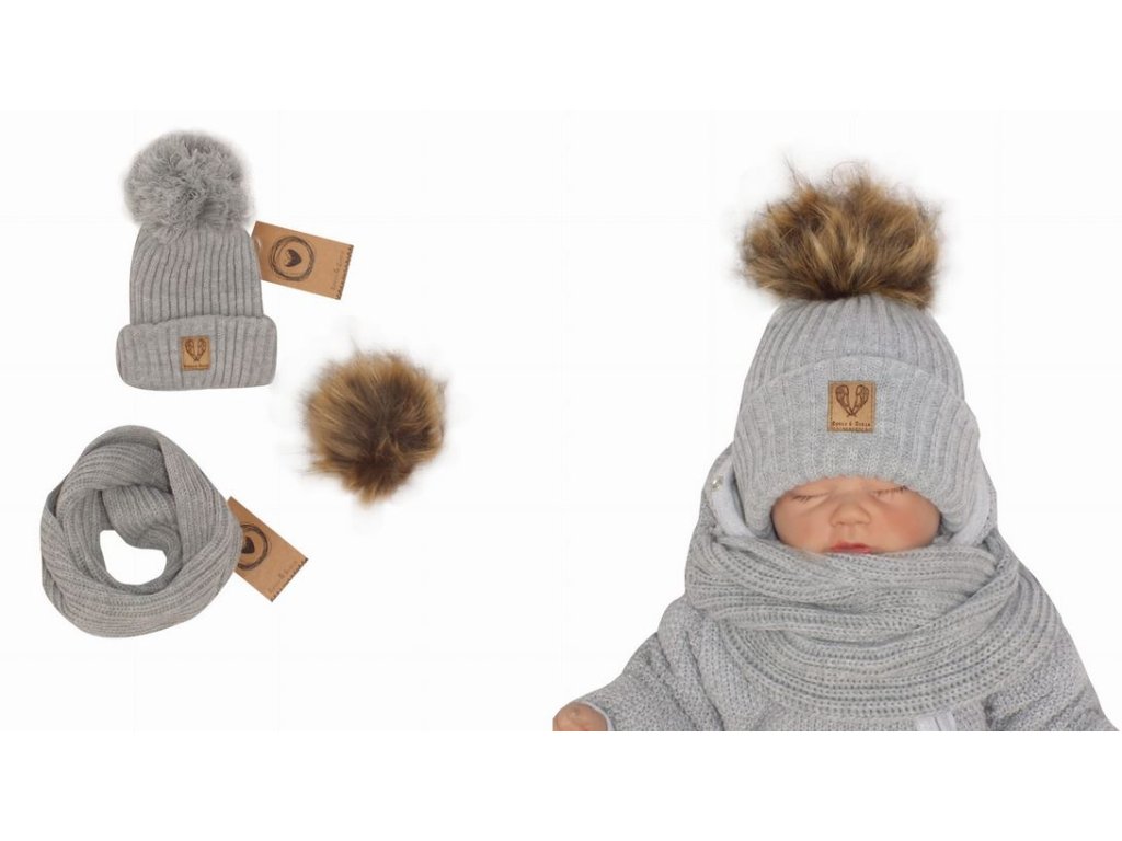 Z&Z Zimní čepice 3v1 + komínek, šedá