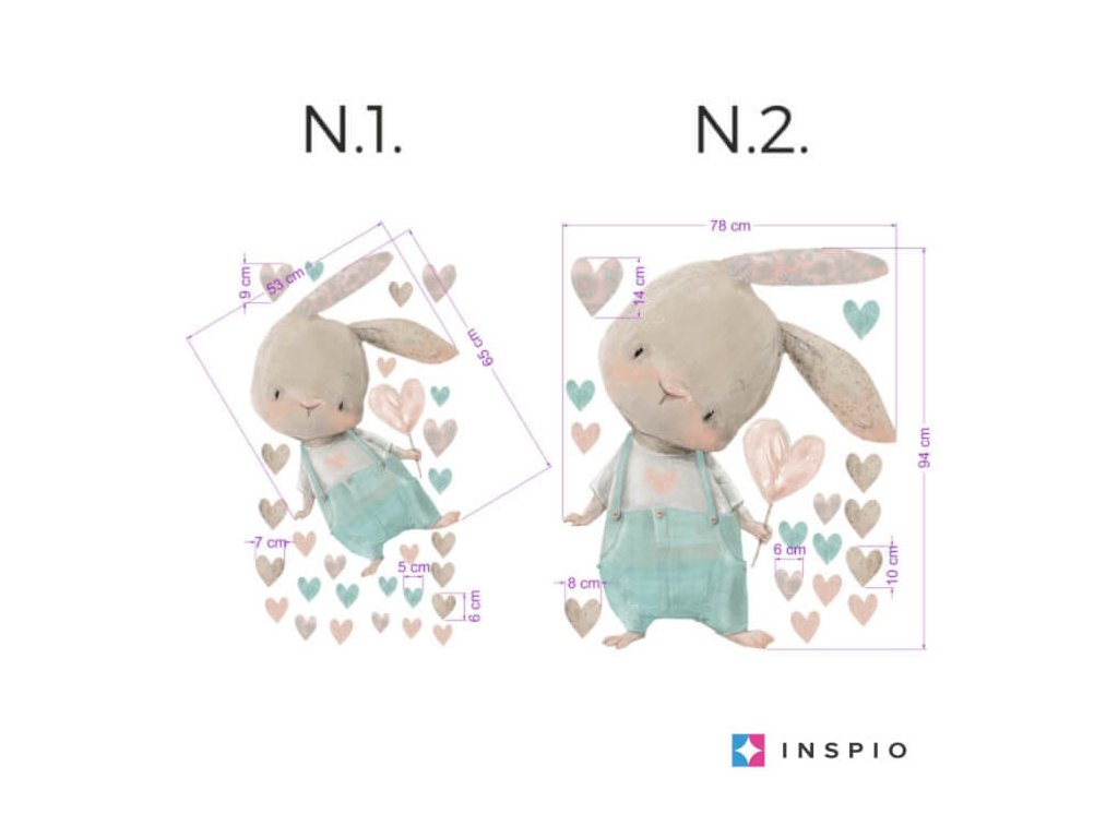 Zajko so srdiečkom - detské samolepky na stenu N.2.