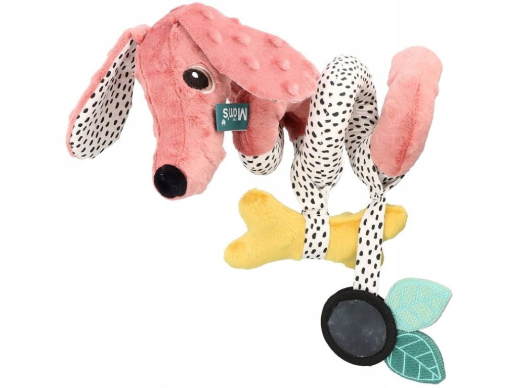 Závesná edukačná hračka Hencz Toys s hrkálkou a zrkadielkom - Psík, špirálka -púdrová