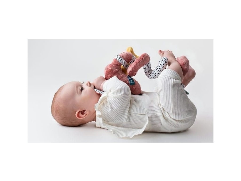 Jemný zvuk hrkálky poskytuje sluchové a zrakové podnety, vzbudzujúce záujem najmenších. Špirála zavesená pri každom kočíku sa stane jeho neodmysliteľným prvkom.