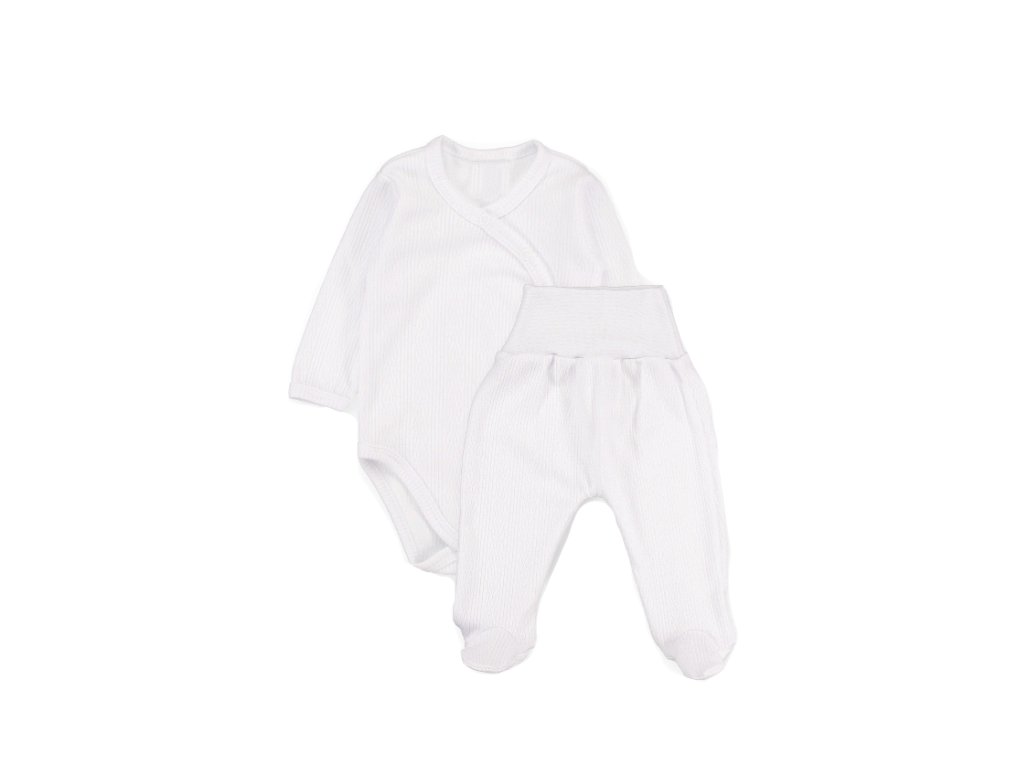 Zavinovací body dl. rukáv + polodupačky s žebrovaným vzorem, 2D sada MBaby, bílé