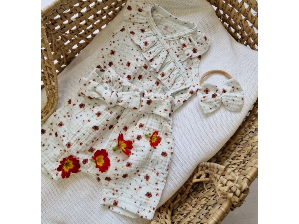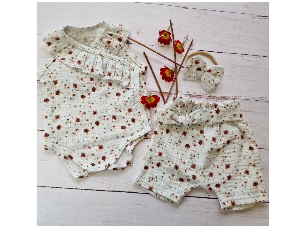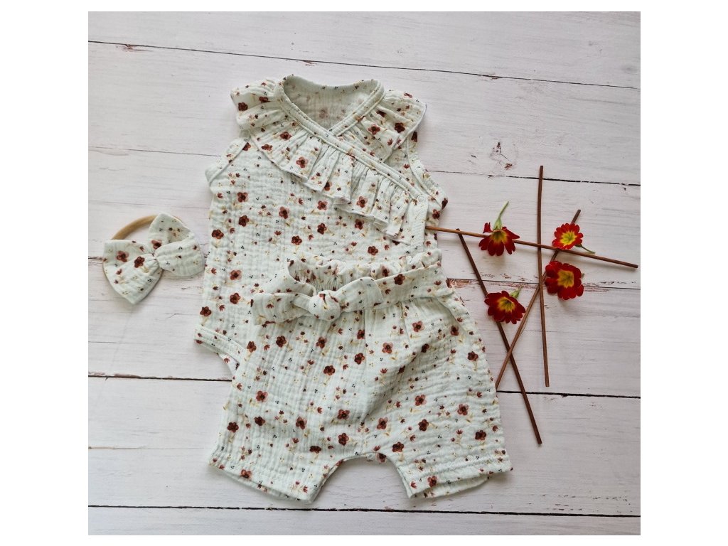 Zavinovací body s volánkem, kraťasy + čelenka mušelín, 3D, Z&Z Květinky, smetanové