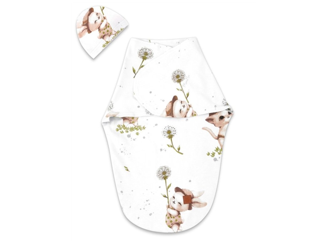 Zavinovací vak, zavinovačka, LUX SOFT, bavlna, Kocúrik a púpava - biela