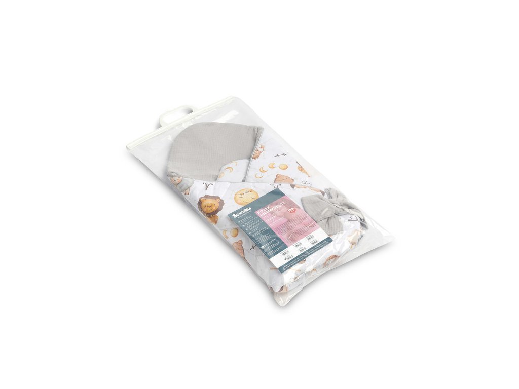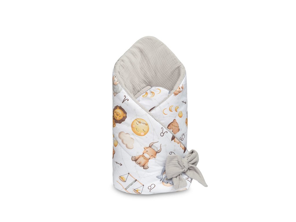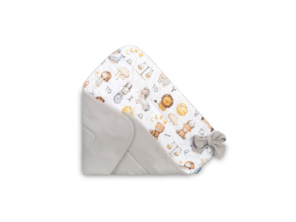 Zavinovačka pre bábätko, mušelín, bavlna - Hviezdne zvieratká - šedá, biela