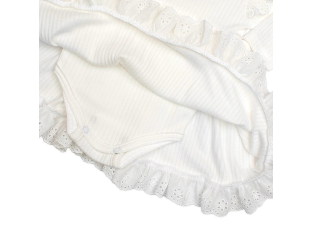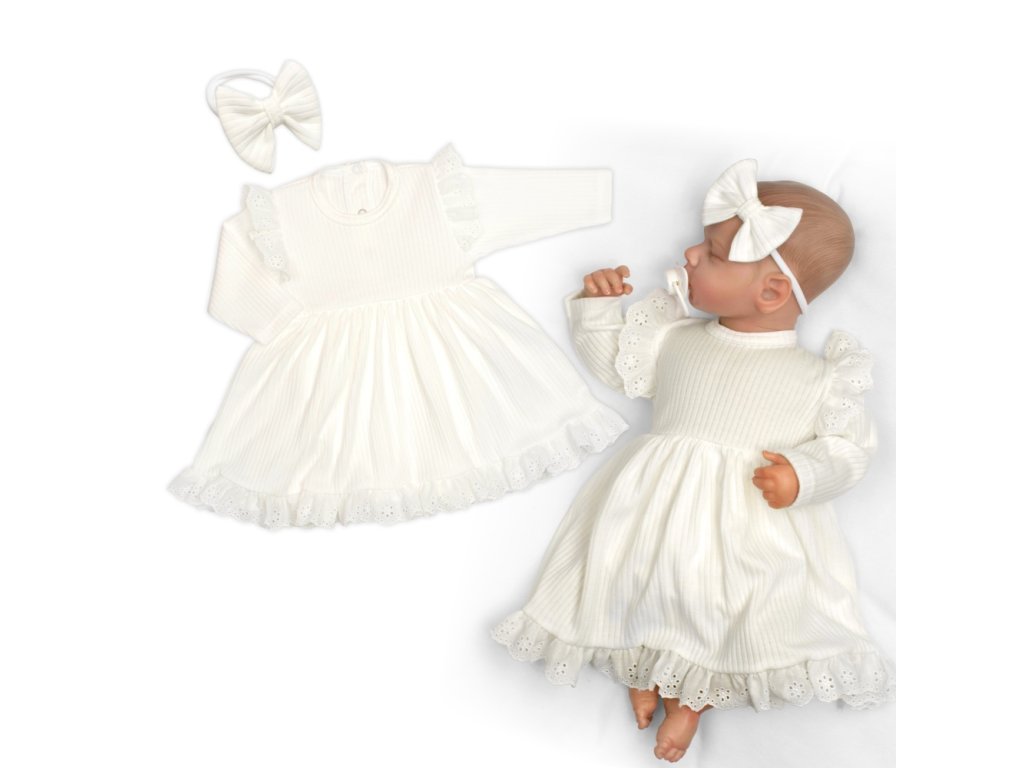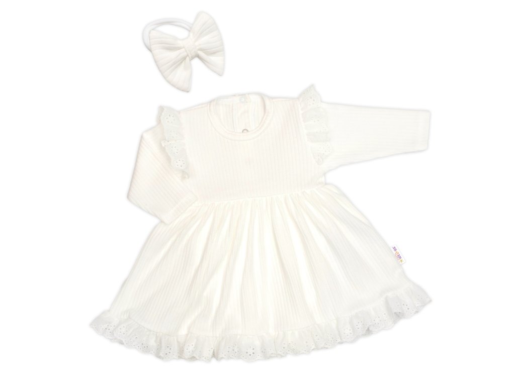 Žebrované sukničkobody + čelenka Paula, dl. rukáv, bavlna, 2D sada, smetanové