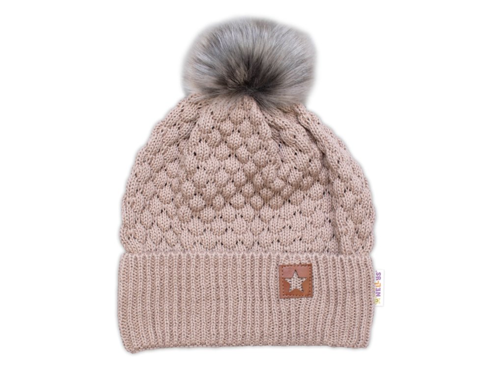 Zimná čiapka Star s chlpáčkovým brmbolcom - béžová