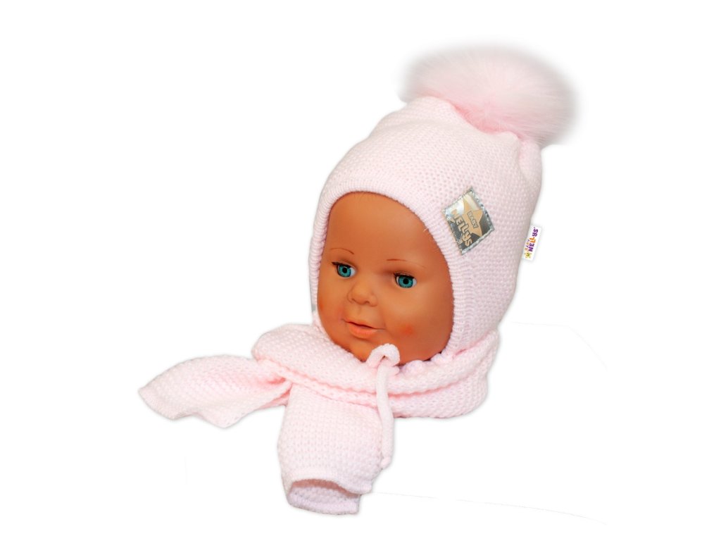 Zimná čiapočka s šálom - chlupáčková Bambulka - sv. ružová/sv. ružová
