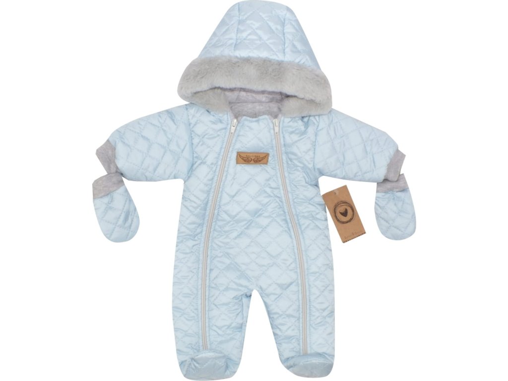 Zimní prošívaná kombinéza s kožešinou a kapucí + rukavičky Z&Z - modrá