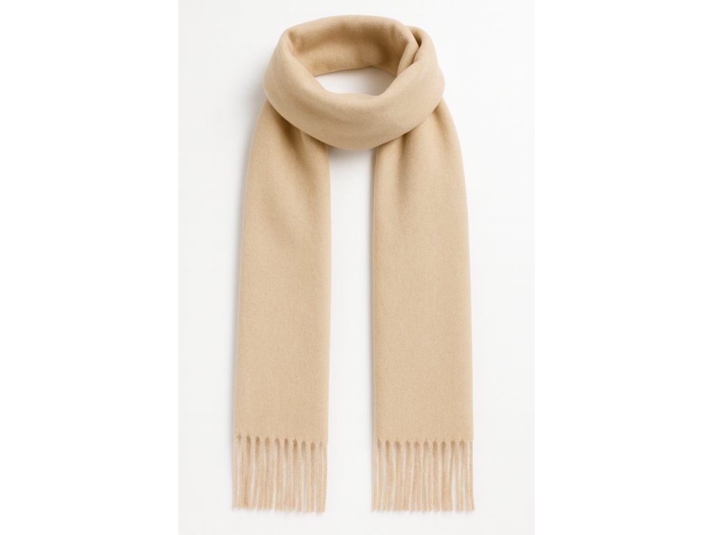 Elegantný zimný šál v nadčasovej béžovej farbe je ideálnym doplnkom na chladné dni.